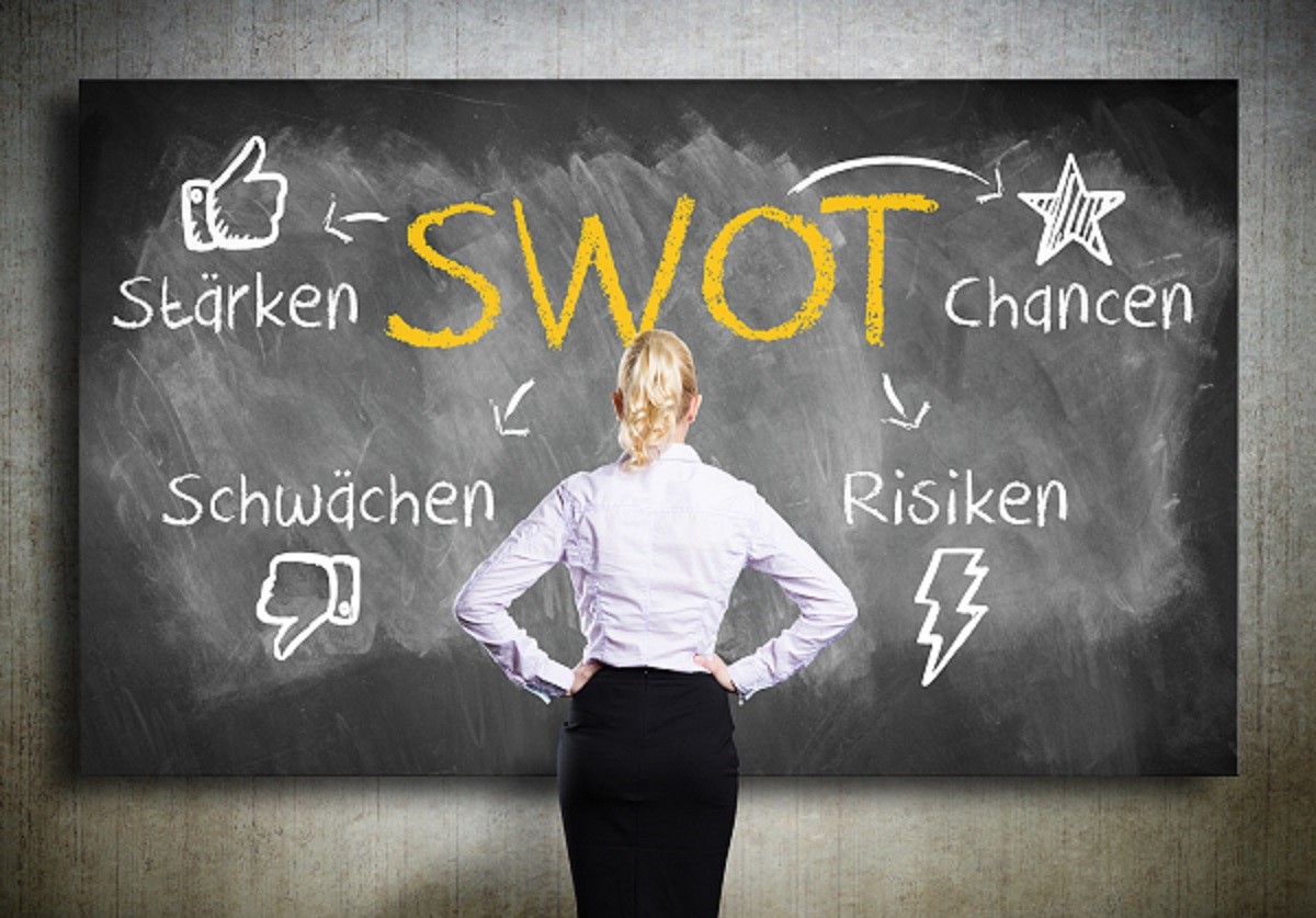 junge Frau mit SWOT-Analyse-Konzept